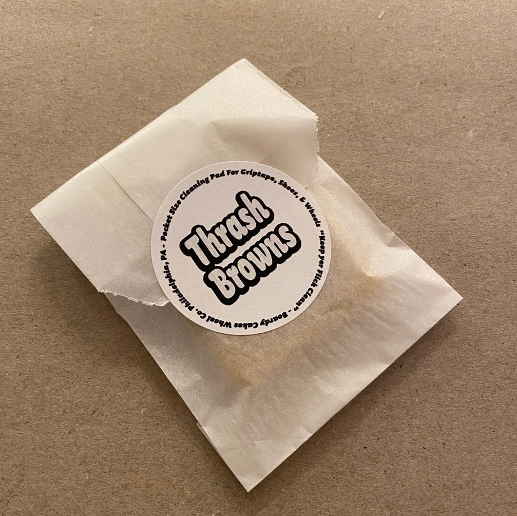 Keep yer flick clean on the go with Thrash Browns. Ideally shaped & pocket sized for a quick clean up right before the make, Thrash Browns are also great for getting gunk off shoe soles & wheels.