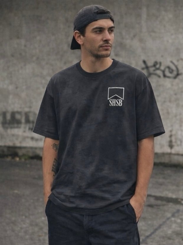 Boxy, oversized fit with dropped shoulders Heavy Faded weight, 240 GSM, 16-singles 100% carded cotton Wide neck ribbing, side seamed, shoulder to shoulder tape, double needle hems, garment dyed, pre-shrunk to minimise shrinkage.
